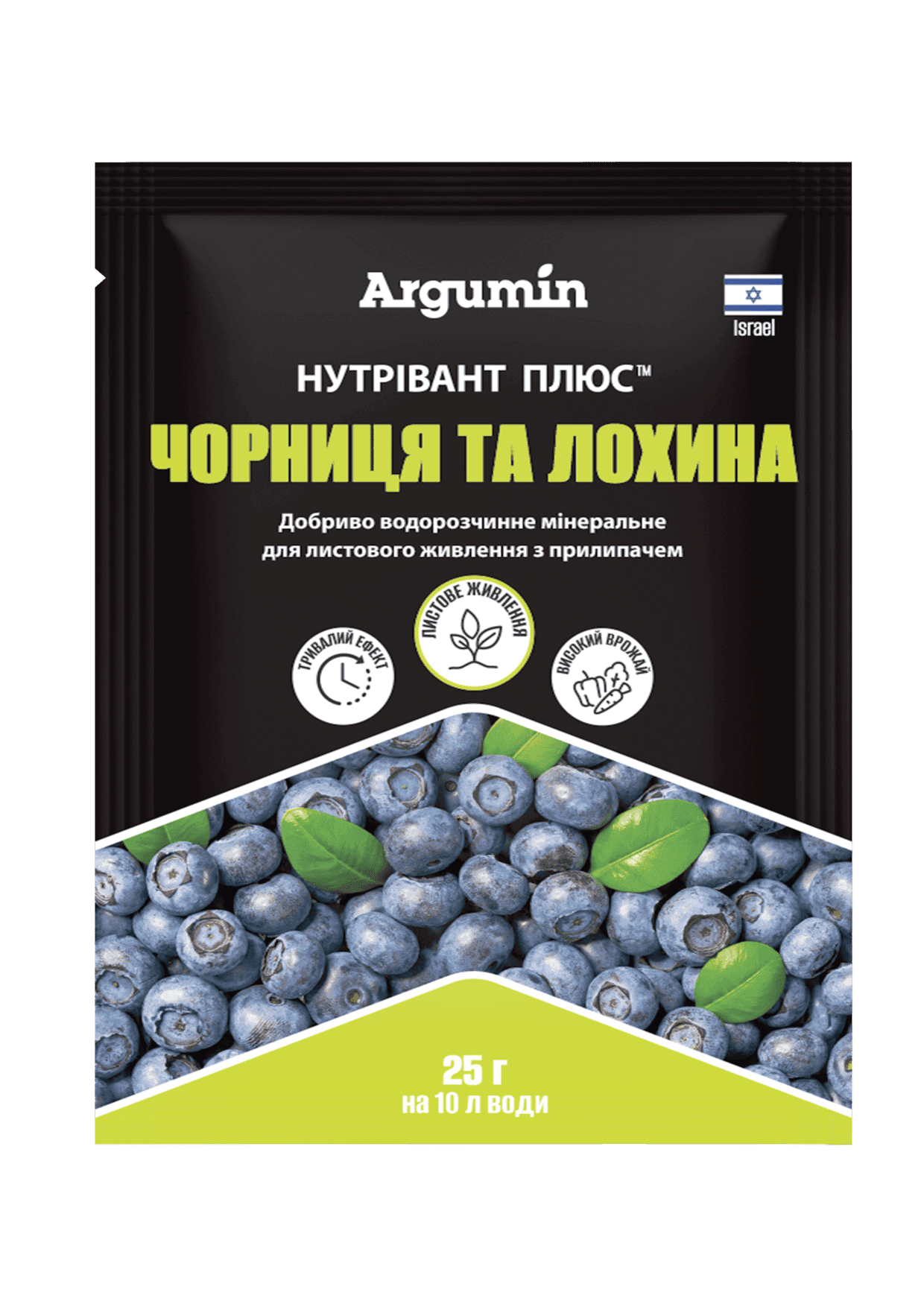 Водорозчинне добриво призначене для листових (позакореневих) підживлень чорниці та лохини в ключові фази розвитку
