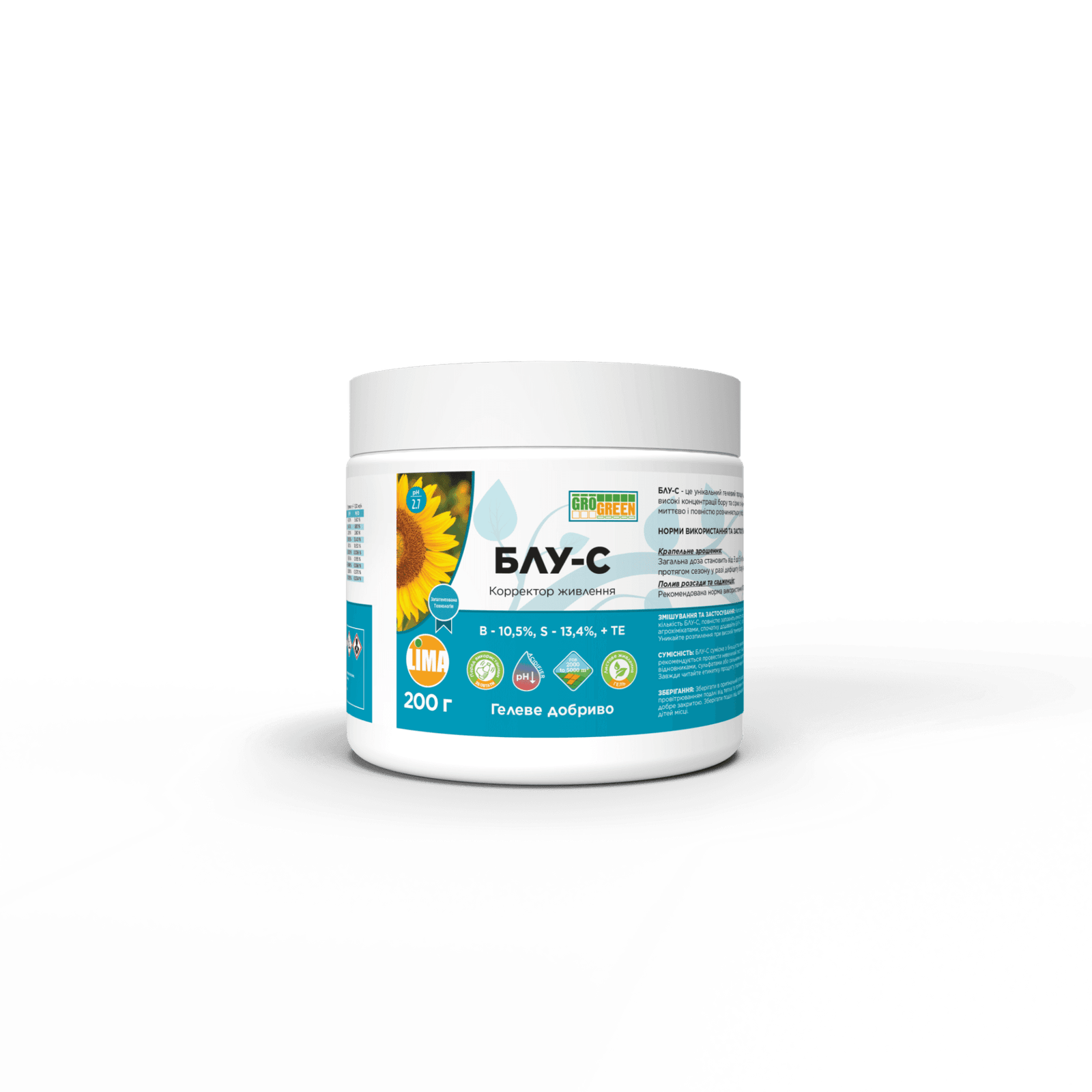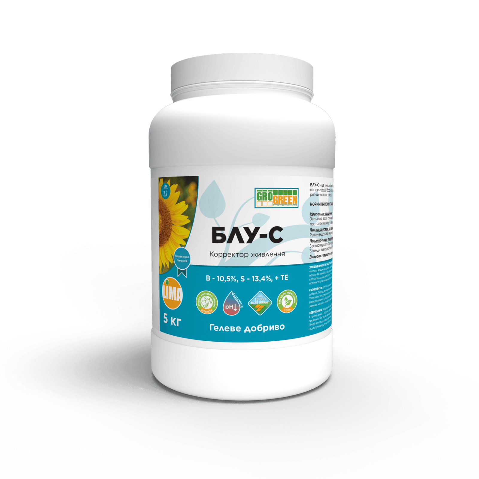 • Добриво Гель БЛУ-СВисокий вміст бору та сірки з мікроелементамиБлу-С – це унікальний гелевий продукт для листового живлення з дуже низьким pH, який поєднує високі концентрації бору та сірки з іншими мікроелементами, такими як цинк і молібден. Блу-С миттєво і повністю розчиняється у воді.Чому варто використовувати Блу-С:
