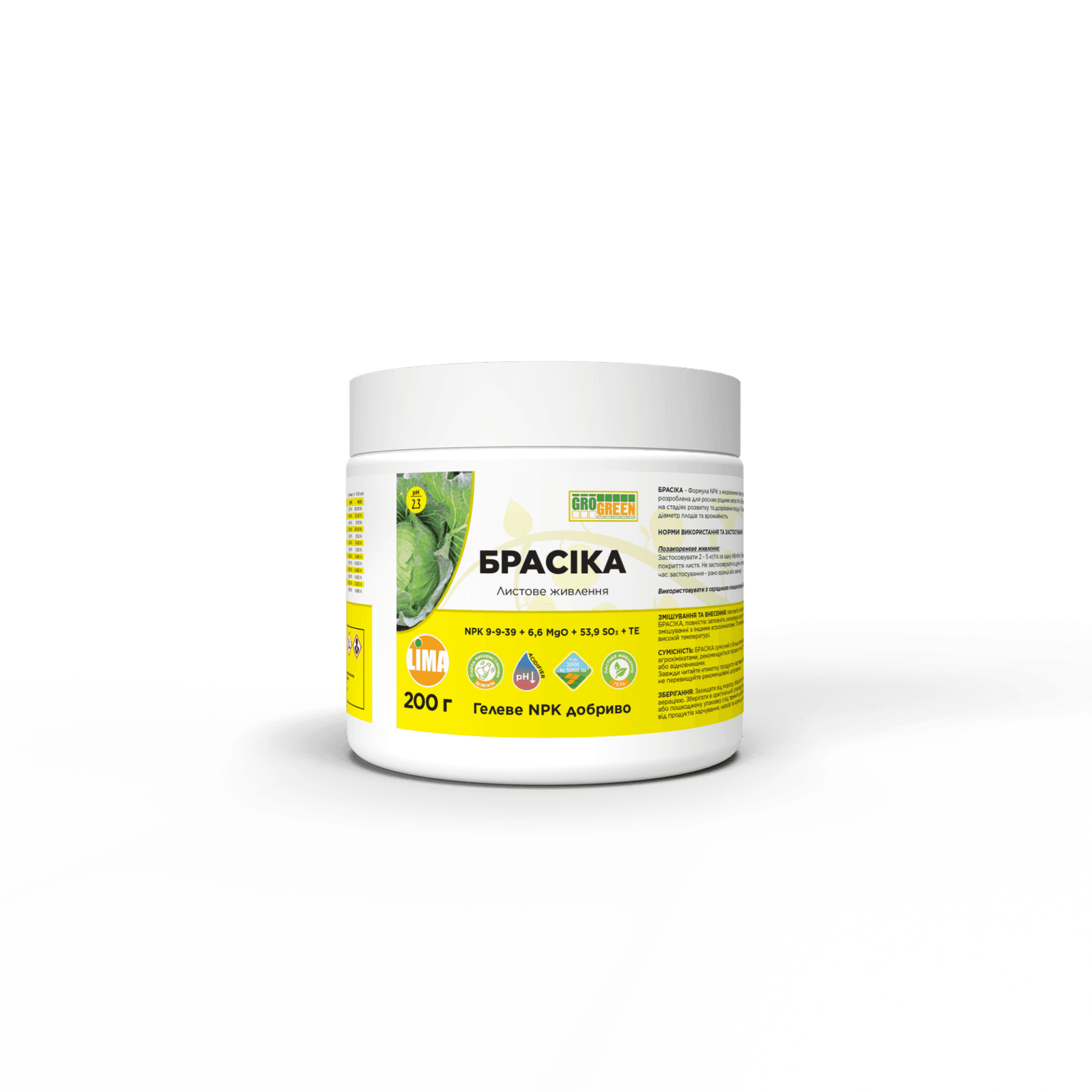 • Формула NPK з мікроелементами у поєднанні з високим вмістом калію, магнію та сірки.- Спеціально розроблена формула для рослин родини капустяні (Brassicaceae).