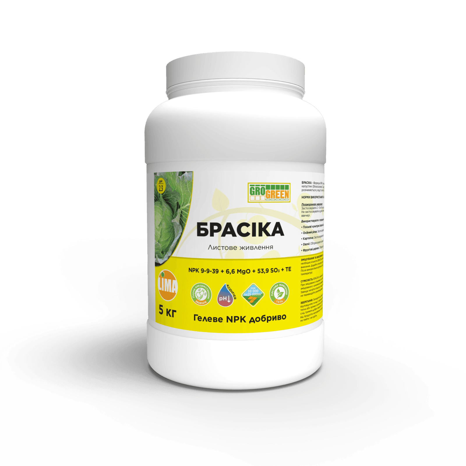 - Добриво Гель БРАСІКА NPK 9-9-39+6,6MgO+53,9SO₃ + TE Преміальне листове живлення