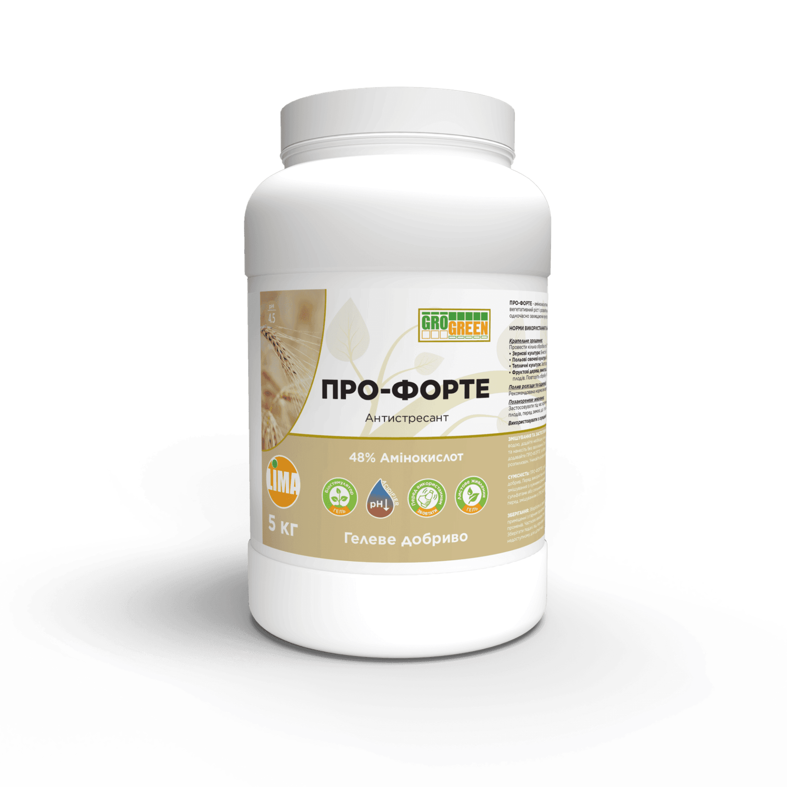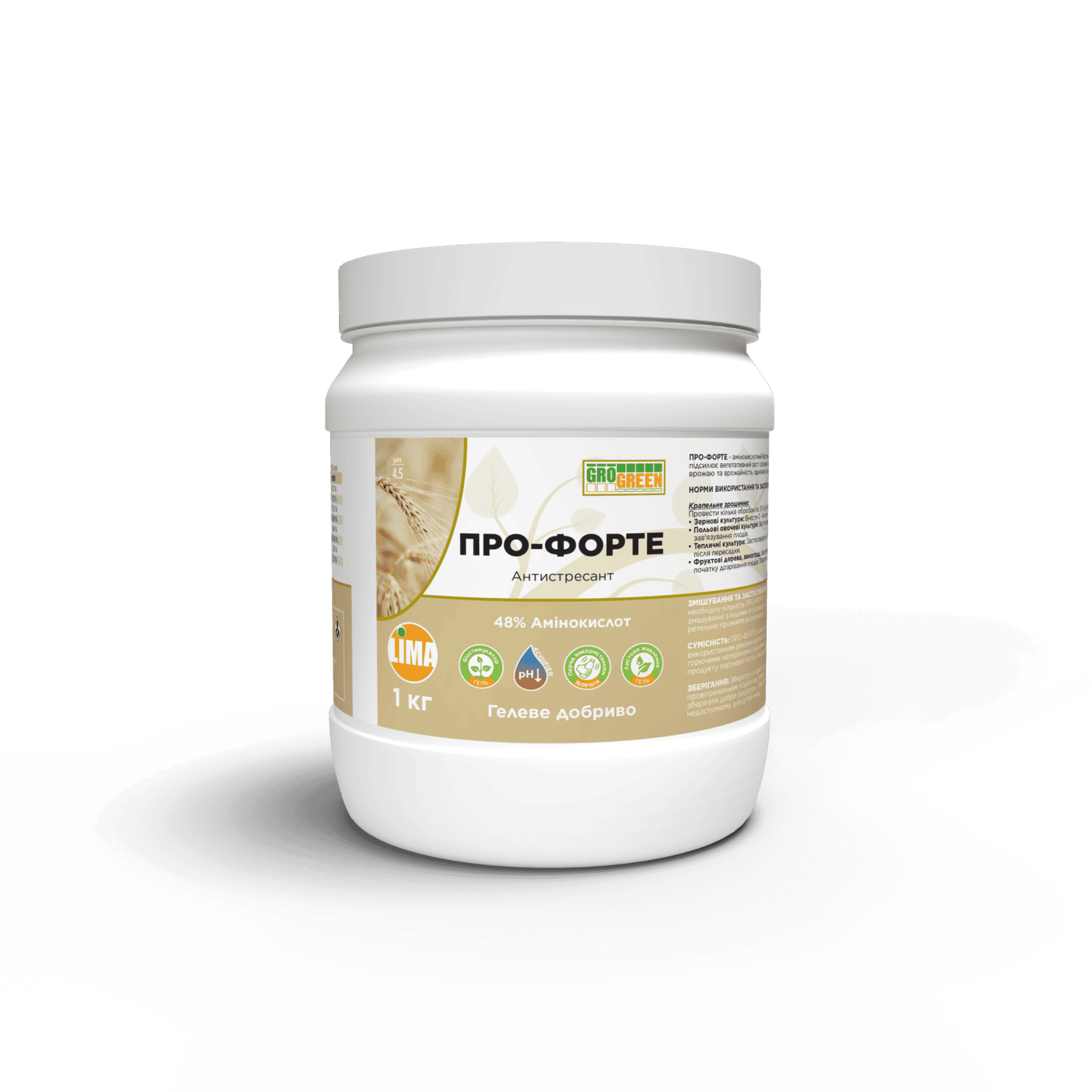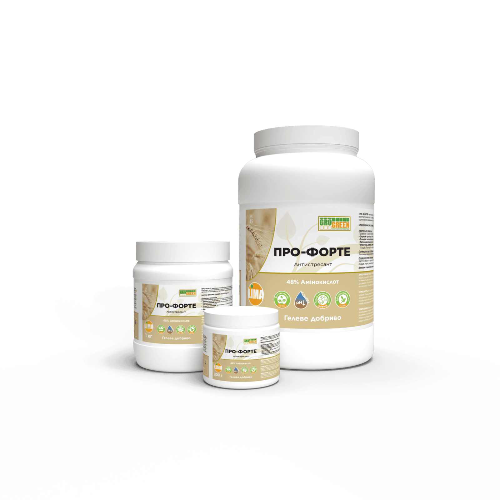• ПРО-ФОРТЕ – амінокислотний біостимулятор рослинного походження з вітамінним комплексом. Ця унікальна формула підсилює вегетативний ріст і розвиток коренів. Стимулює цвітіння, запилення та зав’язування плодів. Покращує якість врожаю та врожайність, одночасно захищаючи культури від несприятливих умов.