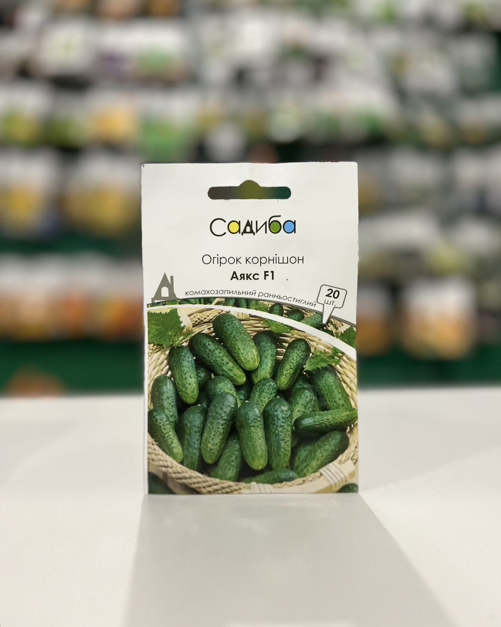 Огірок Аякс F1 – ранньостиглий (40-50 днів) комахозапильний гібрид корнішонного типу з високою стабільною врожайністю для вирощування у відкритому ґрунті. Відкрита потужна плетиста рослина формує декілька огірочків в одному вузлі. Зеленці однорідні, темно-зеленого кольору, білошипі, довжиною 6-12 см, соковиті, генетично без гіркоти. Середня врожайність 5-10 кг/м2. Гібрид отримав визнання за відмінні смакові й засолювальні якості, високу стійкість до спеки, посухи й поширених хвороб. Спеціально виведений для вирощування на пікулі.