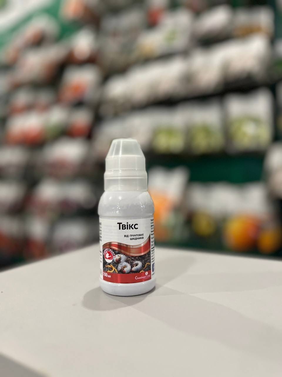 - Знищення ґрунтових шкідників: «Твікс» знищує шкідників, що живуть у верхньому шарі ґрунту, таких як дротяники, личинки хрущів, капустянки, личинки кореневих мух, ківсяки та інші. Забезпечує ефективний захист молодих сходів від шкідників навіть за високої чисельності. Застосовується для профілактики та захисту під корінь багаторічних рослин (наприклад, сади, ягідніхлорпірифос 500 г/л + циперметрин 50 г/л кущі).