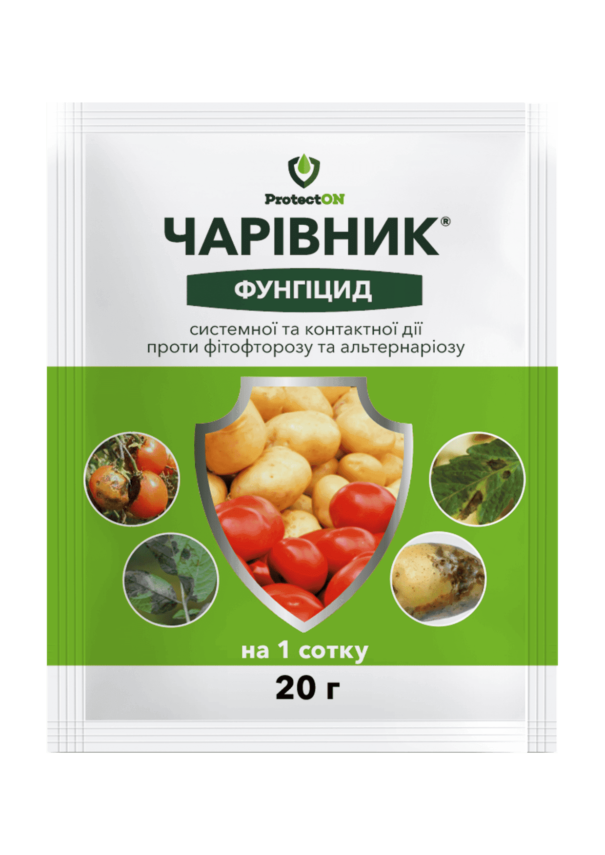 | Картопля | Фітофтороз, альтернаріоз | 2 | 20 г на 5 л води | 20 днів |
