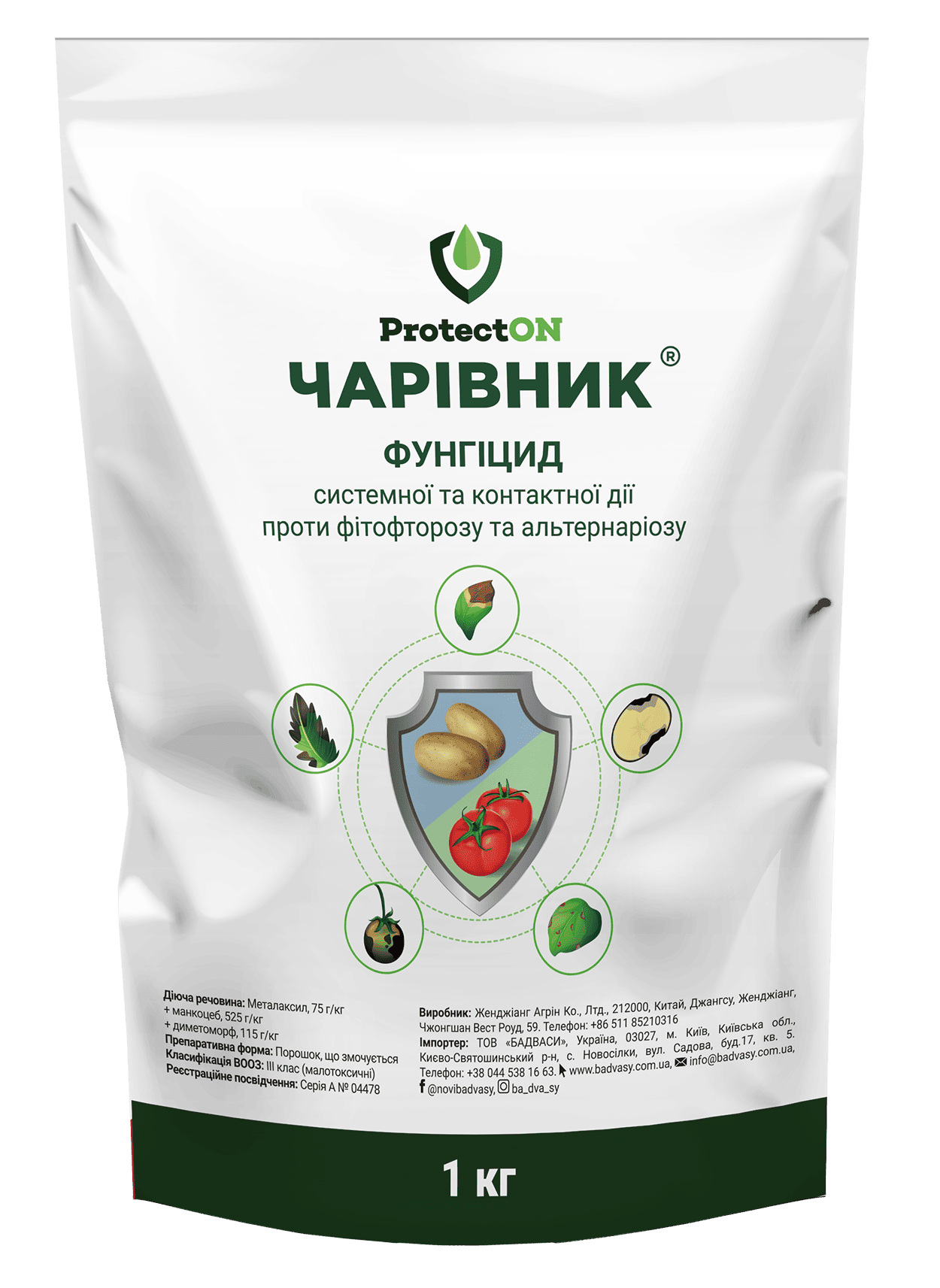 Спектр дії: фітофтороз, альтернаріоз, мілдью, пероноспороз