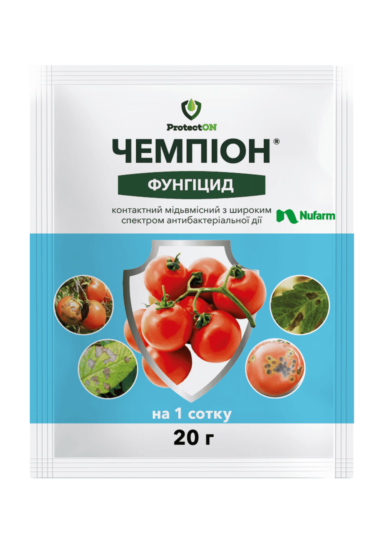 Спектр дії: фітофтороз, рання суха плямистість, чорна бактеріальна плямистість, мілдью, парша