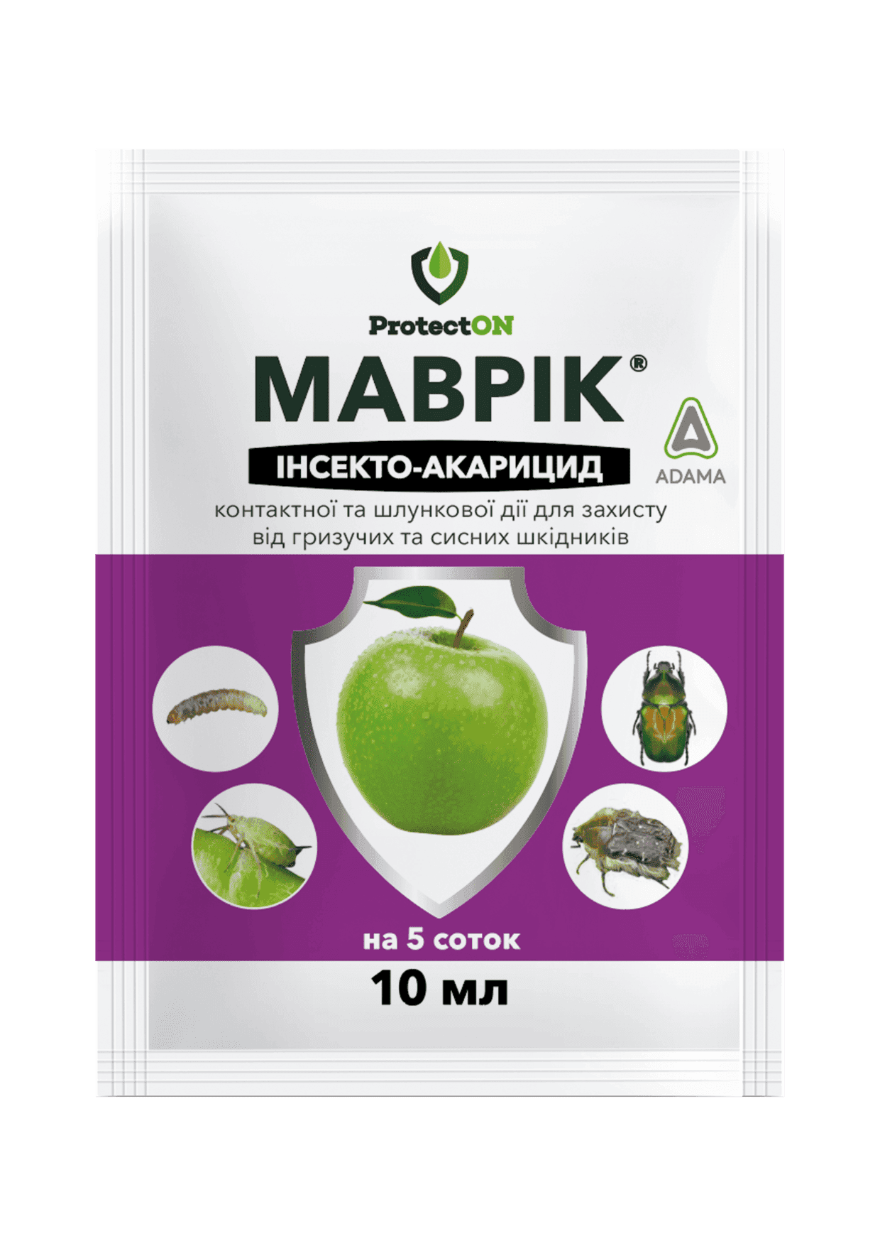 Спектр дії: попелиця червоноголова (або сіра яблунева), попелиця зелена яблунева, довгоносик сірий, бруньковий (або брунькоїд), квіткоїд яблуневий, казарка, яблуневий плодовий пильщик (трач), листовійка сітчаста, листовійка розанова, оленка волохата, бронзівка смердюча, бронзівка золотиста, бронзівка селика зелена, плодожерка яблунева, ріпаковий квіткоїд, хрестоцвіті блішки, клопи, листогризучі совки, прихованохоботники, оленка волохата, бурякові блішки, щитоноски, бурякова листкова попелиця
